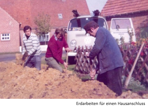 Bis dahin war bereits in vielen Ortschaften mit der Verlegung der Versorgungsleitungen begonnen worden. Große Transportleitungen mussten über weite Strecken verlegt werden, um das Wasser überall hinbringen zu können. Und wie sehr sich die Menschen darauf freuten, einwandfreies Trinkwasser ins Haus geliefert zu bekommen, mag die Tatsache zeigen, dass viele von Ihnen – als die Verbandsmitarbeiter kamen und den Rohgraben für den Hausanschluss auswerfen wollten – bereits selber mit Schubkarre und Spaten dastanden, um mitzuhelfen.