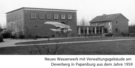 1957 wurde dann der Ruf nach einer öffentlichen Wasserversorgung auch in den umliegenden Gebieten der Stadt lauter. Außerdem schritt die wirtschaftliche Entwicklung der Städte Papenburg und Aschendorf zusehends voran und die Trinkwasserbrunnen der umliegenden Gemeinden waren von unhygienischer und unzureichender Qualität. Daraufhin gründeten die Städte Papenburg und Aschendorf und die Gemeinden Bokel, Völlen und Neulehe den Wasserbeschaffungsverband Papenburg-Aschendorf, der dann für die öffentliche Versorgung von rd. 20.000 Menschen und 5.000 Stück Großvieh zuständig war. Ein neues Wasserwerk mit einer Leistung von 200 m³/h wurde 1957 am Deverweg in Papenburg errichtet. Als ein weithin sichtbares Zeichen dieser gesamten Ära galt der Papenburger Wasserturm (siehe Foto oben), der im Jahre 1963 leider abgerissen werden musste.